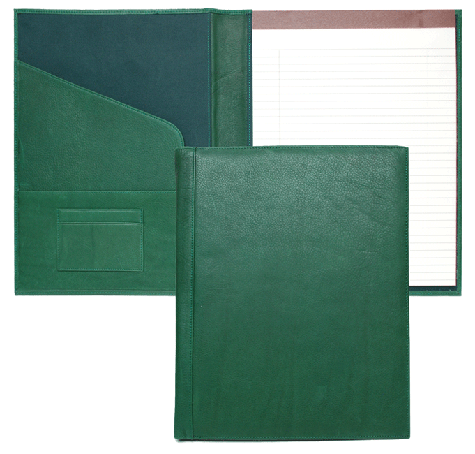 Product Info : Premium full-grain leather letter pad covers. Foam padded, turned edges and hand stitched covers. Inside pockets/document flap. Pen slot (pen not included). Top/side-loading slots on inside right pocket. 12 x 9 1/2 leather pad cover.